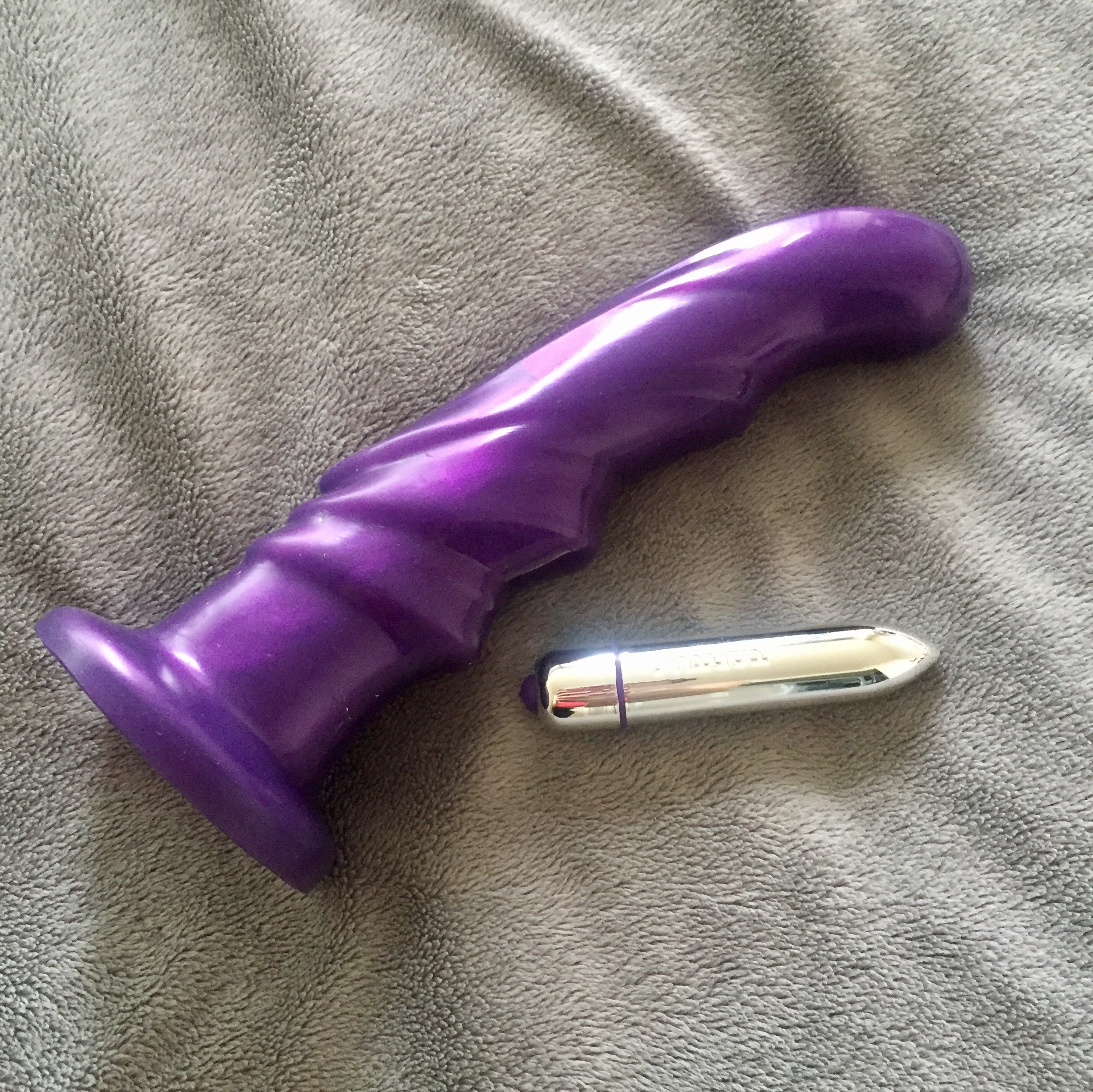 Tantus makes their toys from 100% premium silicone so they’re totally body safe, and the Tsunami is both anal-safe and harness compatible, if that’s a thing you enjoy. It’s even compatible with a suction cup, and the insertion point for the suction cup doubles as a little home for a vibe. Tantus sends you one, but mine only worked once before dying so I’ve just taken to sticking my Tango in there and enjoying the ride. The finish is glossy, and sticky enough that I keep mine in a separate bag from the rest of my toys because I live in a house with a cat and fur flies constantly. Boilable, bleachable, dishwasherable, and soap-and-water-able.